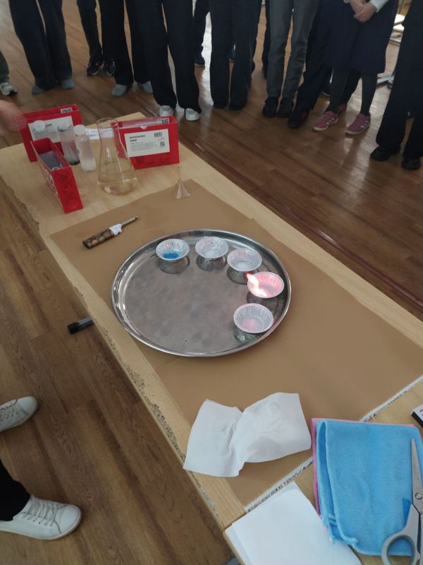 Не менее впечатляющим был опыт с "Фараоновой змеей", который показал, как горение веществ может создавать удивительные эффекты. А разноцветное пламя стало настоящим шоу, объяснив детям, что происходит во время горения и как различные вещества могут изменять цвет пламени.